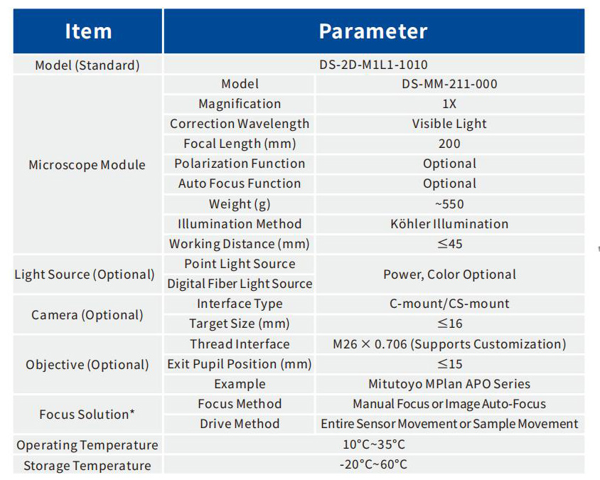● Microscopic imaging supporting≤16mm target surface. ● Uses coaxial Köhler illumination with high uniformity(≥0.9). ● Supports interfaces for expanding with laser light source,laser focus sensor,darkfield illumination,etc. ● Supports customer customization.
