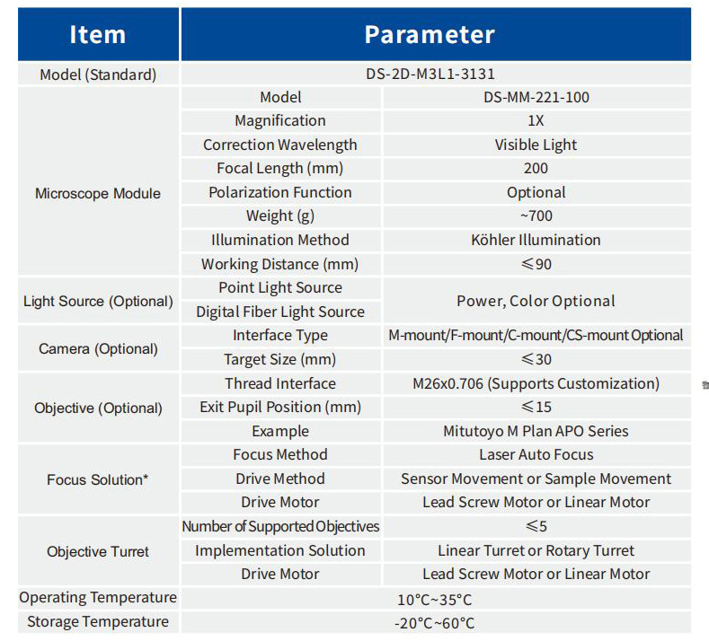 ● Uses coaxial Köhler illumination with high uniformity (≥0.9).